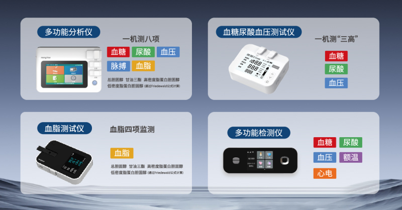 随着健康管理意识觉醒与银发经济崛起,居家健康检测从 “可选” 变为 “刚需”,小型化、智能化、集成化的检测设备成为行业发展新方向。湖南宏怡生物科技有限公司准确把握市场趋势,聚焦居家检测与慢病管理赛道,打造 MFA-1 多功能分析仪、BLM-1 血脂测试仪、MFT-1 多功能检测仪、PUG-1 血糖尿酸血压测试仪四大核心产品矩阵,为家庭提供一站式健康监测解决方案。