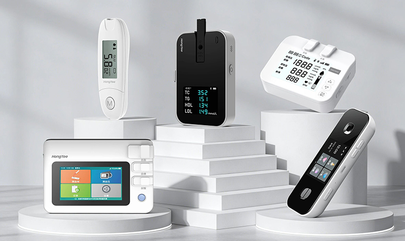 调研组一行首先参观了公司产品展示区,详细了解企业在生物传感与生命科学领域的核心技术布局。宏怡生物聚焦居家医疗器械和数智化穿戴设备的研发,目前已推出多款血糖、尿酸、血脂、血压、心电、体温等集成一体机产品,可实现对高血糖、高血脂、高血压等慢病管理指标的日常监测和健康管理。