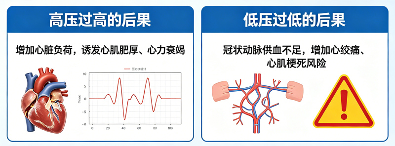 脉压差过大会带来两个严重后果:一方面,高压过高会增加心脏负荷,诱发心肌肥厚、心力衰竭;另一方面,低压过低会导致冠状动脉供血不足,增加心绞痛、心肌梗死的风险。很多老年人单纯追求“高压降下来”,结果低压降得太低,反而伤了心脏。