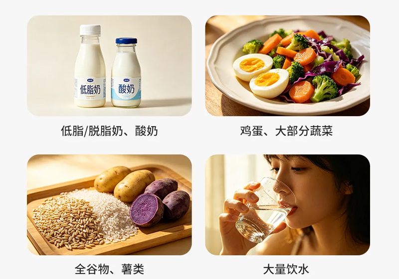 大量饮水(每天2000ml以上,白水、淡茶水为佳)
