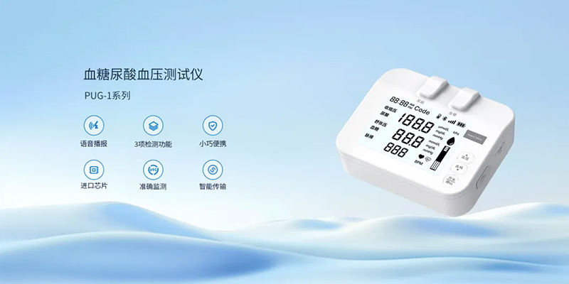 饮食调整效果如何,不能只靠感觉。定期监测尿酸值,才能判断干预是否有效。宏怡生物 PUG-1系列支持尿酸快速测试(约20秒出值,样本为指尖末梢血),同时还可一机完成血糖、血压测量。对于健康管理机构,可配置该设备为客户建立居家监测档案,数据自动上传,便于远程指导。