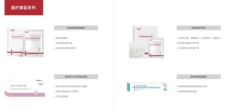 如果健康问题已经造成了创面或疤痕(如术后伤口、烧烫伤、医美术后),宏怡的理疗医美板块提供医用透明质酸钠敷料、疤痕修复凝胶、HPV防护凝胶等械字号产品,用于创面护理、疤痕改善、黏膜防护。
