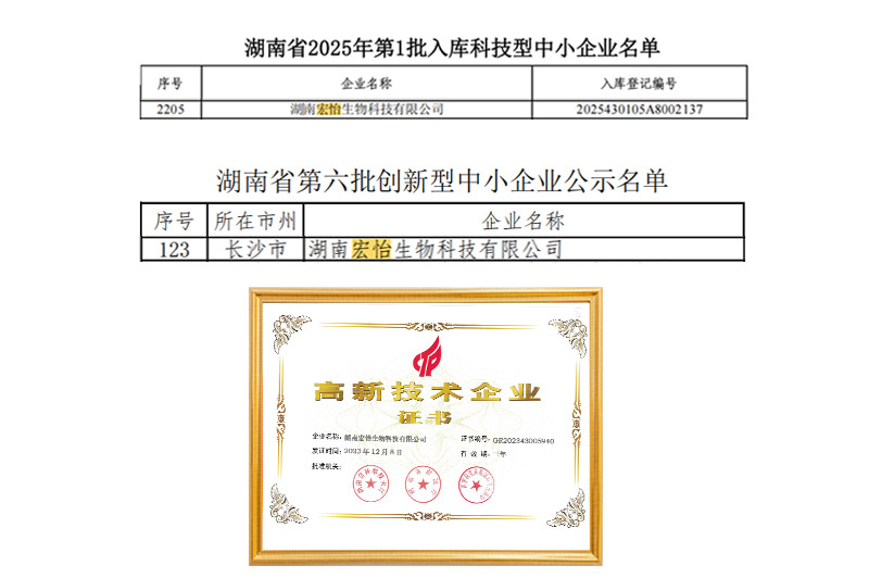 1、稳健布局:以资质与产能筑牢发展根宏怡生物荣膺高新技术企业、科技型中小企业、创新型中小企业等。